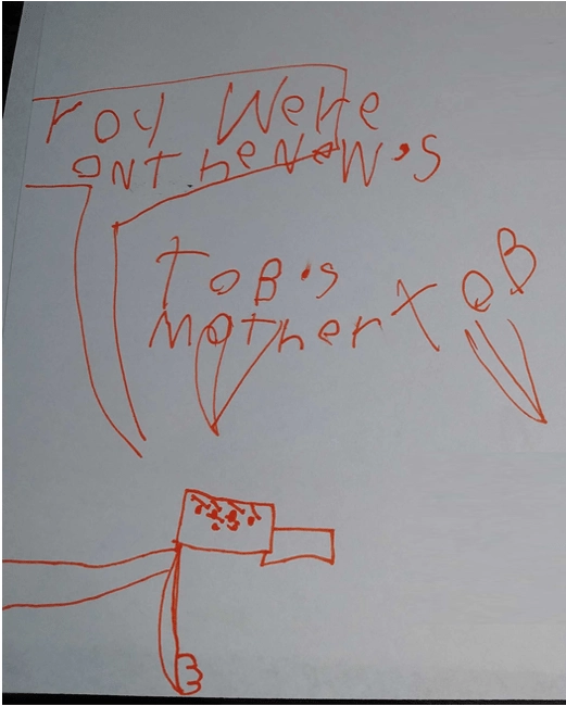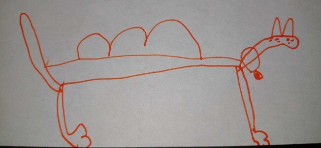 Once upon a time, there was a dinosaur. His name was Bob, I mean Tob. He wasn’t bald. He was a boy. He had some hair. But he wasn’t that fat. He was a grownup. So, he walked along. And he saw some people having a bullfight. He signed up and he did the bullfight. The bullfight was very, very, good. And he won the bullfight. The crowd was going wild! And then they gave him a medal. Then they had some dinner. It was chicken soup. I mean…it was broccoli soup. So… he ate it all up. The end. And then he goed to sleep. The other end.