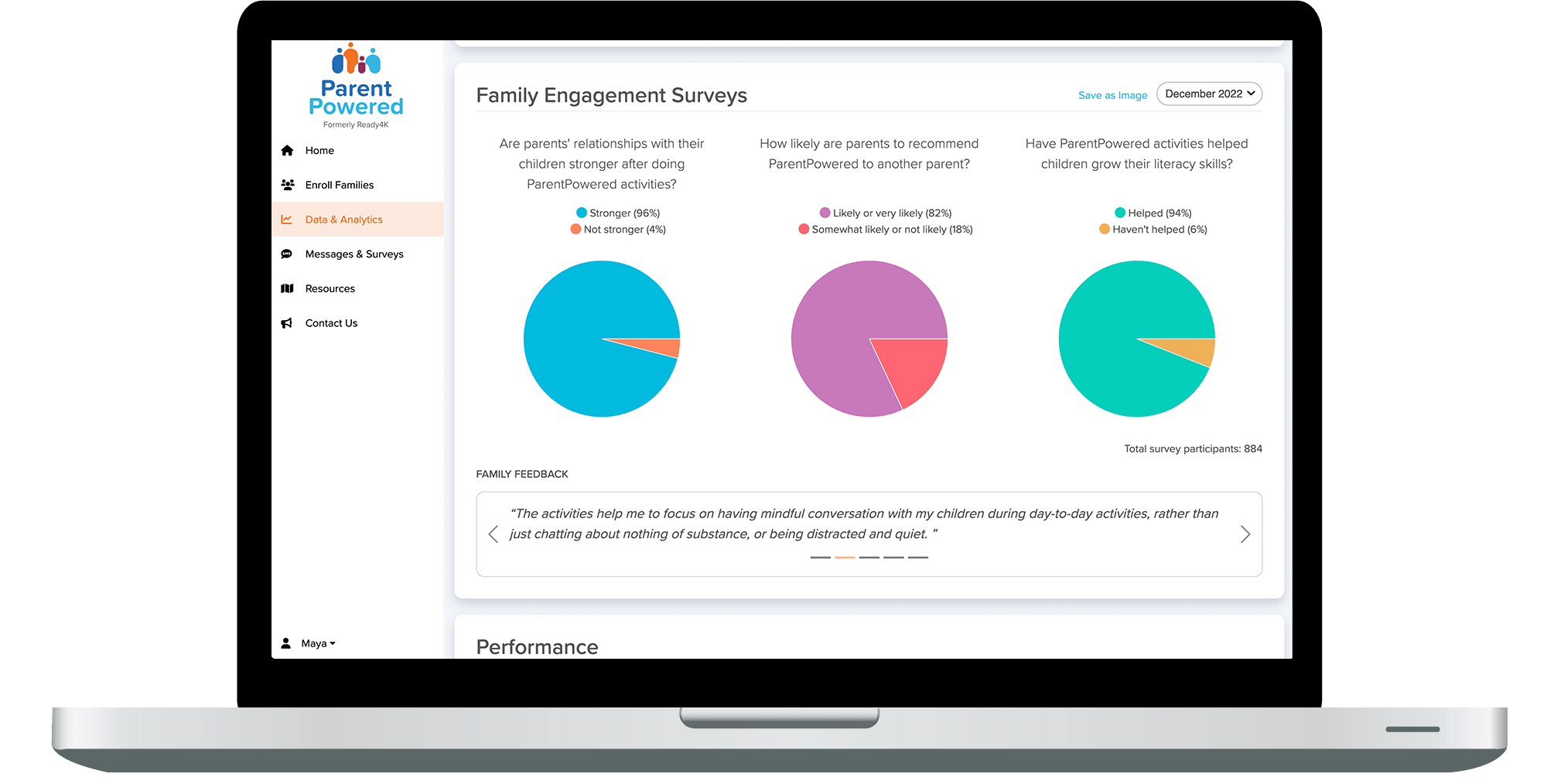 Quarterly family engagement surveys and end of year impact reports show how your families are growing with ParentPowered.
